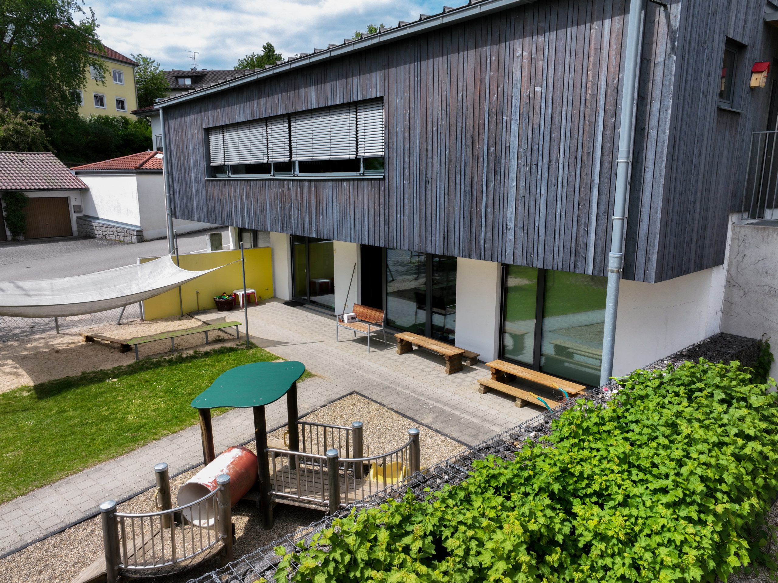 Unsere Kindertagesstätte verfügt über 75 Kindergartenplätze, aufgeteilt in drei Gruppen mit je 25 Kindern. Die Gruppenräume sind hell und geräumig, ausgestattet mit einer Küchenzeile und einem Intensivraum für spezielle Aktivitäten. Zusätzlich stehen eine großzügige Turnhalle und ein weitläufiges Außengelände mit vielfältigen Spielmöglichkeiten zur Verfügung.